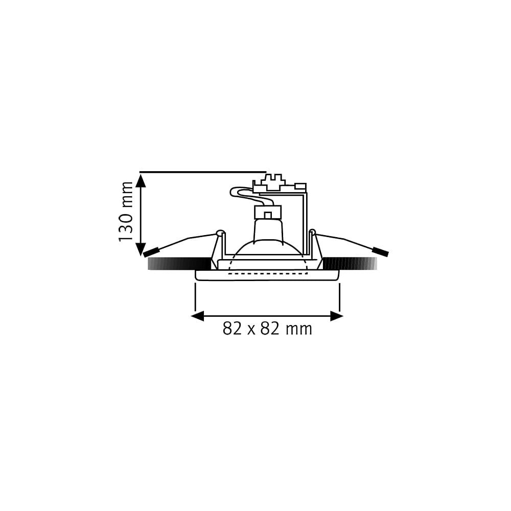 The installation opening of the spotlight has a circular diameter of 13 cm and 6.8 cm. The item comes with clip springs and glass, but the socket is not included. The recessed spotlight is ENEC certified and can be used with dimmable light sources.