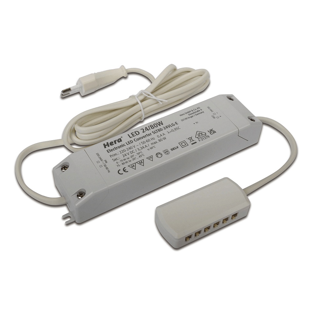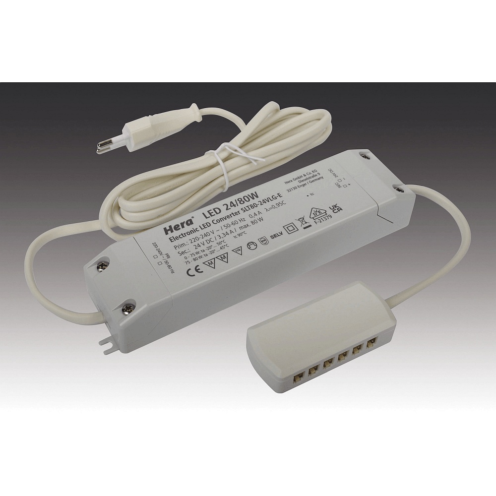 The electronic transformer from Hera is specifically designed for operating LED lamps with a power of 24 to 80 watts. With an operating voltage of 220-240V, it ensures reliable power supply and a long lifespan for your lighting.