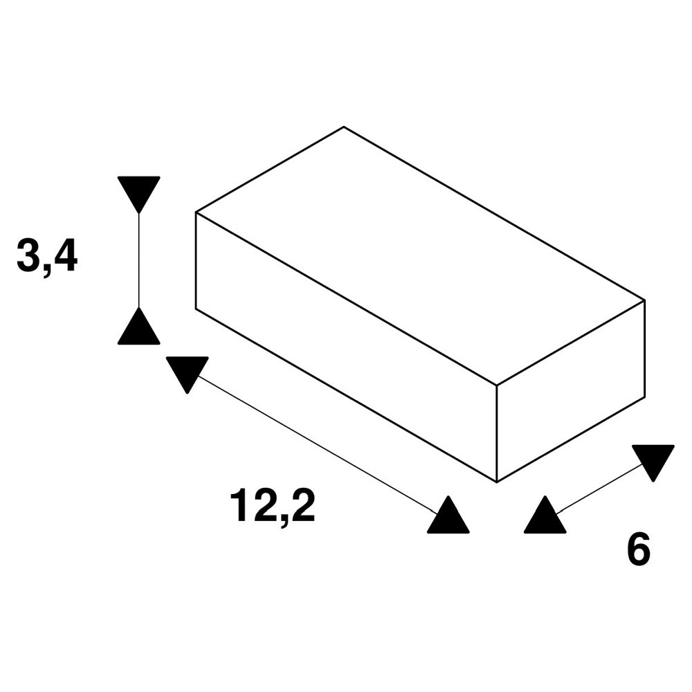 The feeder is delivered as a recessed installation and is designed for use in a rail system. With dimensions of 12.2 x 6 x 3.4 cm and a weight of 91kg, it is easy to install and handle. Additionally, the product features a surrounding ceiling support for secure mounting.