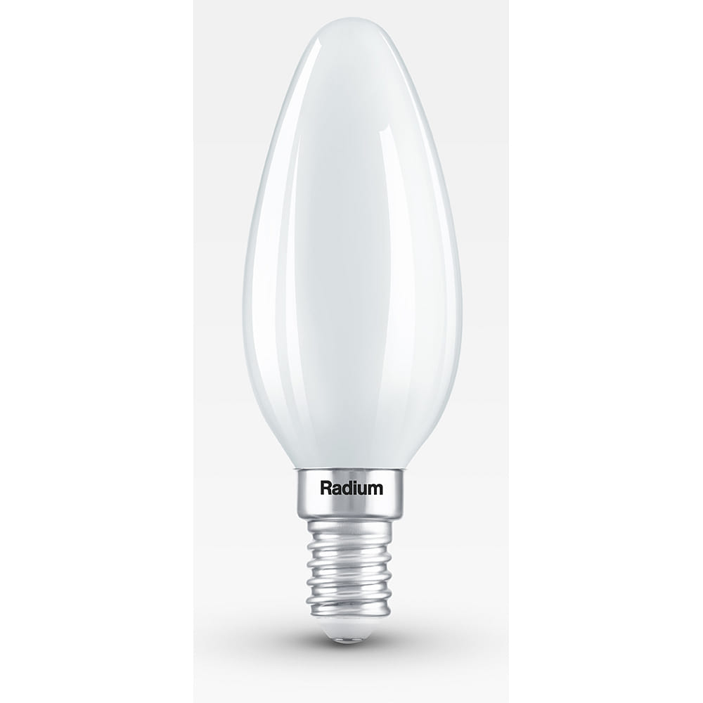 The LED filament candle shape STAR CANDLE C60 DIM 927/F from Radium is a dimmable LED lamp with a power consumption of 5.9W and a luminous flux of 806lm. With a color rendering index of over 90Ra, it provides a natural and clear illumination in extra warm white light color.
