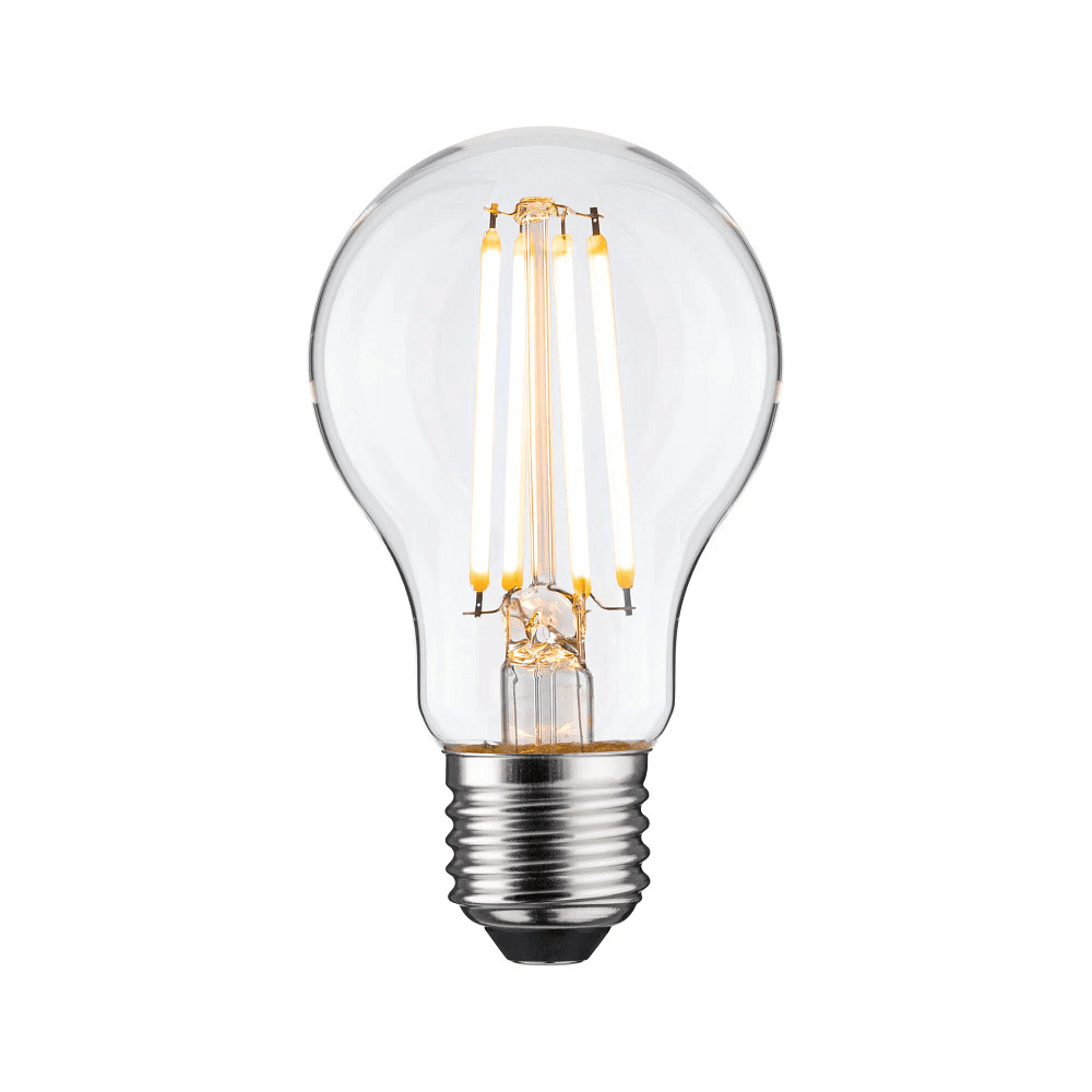 The LED filament bulb ECO-LINE 3-STEP from Paulmann impresses with its high energy efficiency and an impressive lifespan of up to 50,000 hours. With a power consumption of only 5.7 watts, it produces a warm white light with a color temperature of 3000 Kelvin and a luminous flux of 1055 lumens. Thanks to the 360° beam angle, the room is evenly illuminated. The lamp is designed in the classic A60 bulb shape and is made of high-quality glass, giving it an elegant appearance.