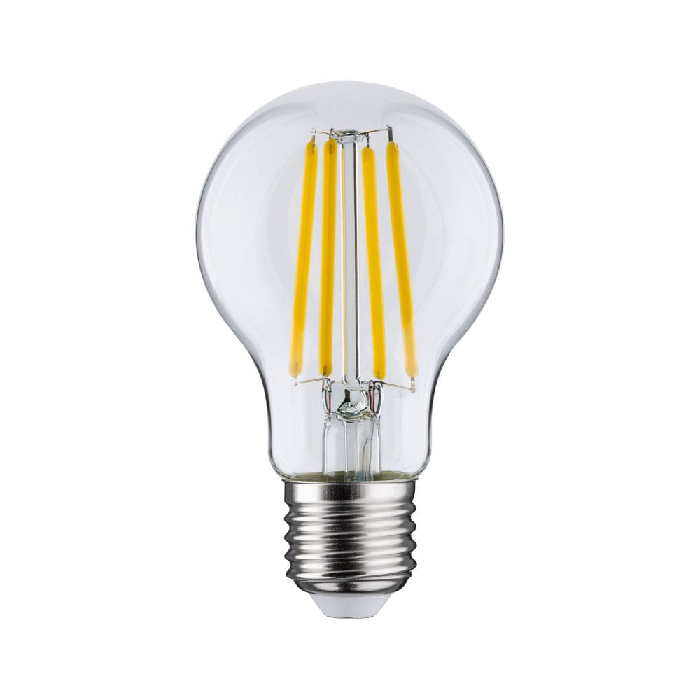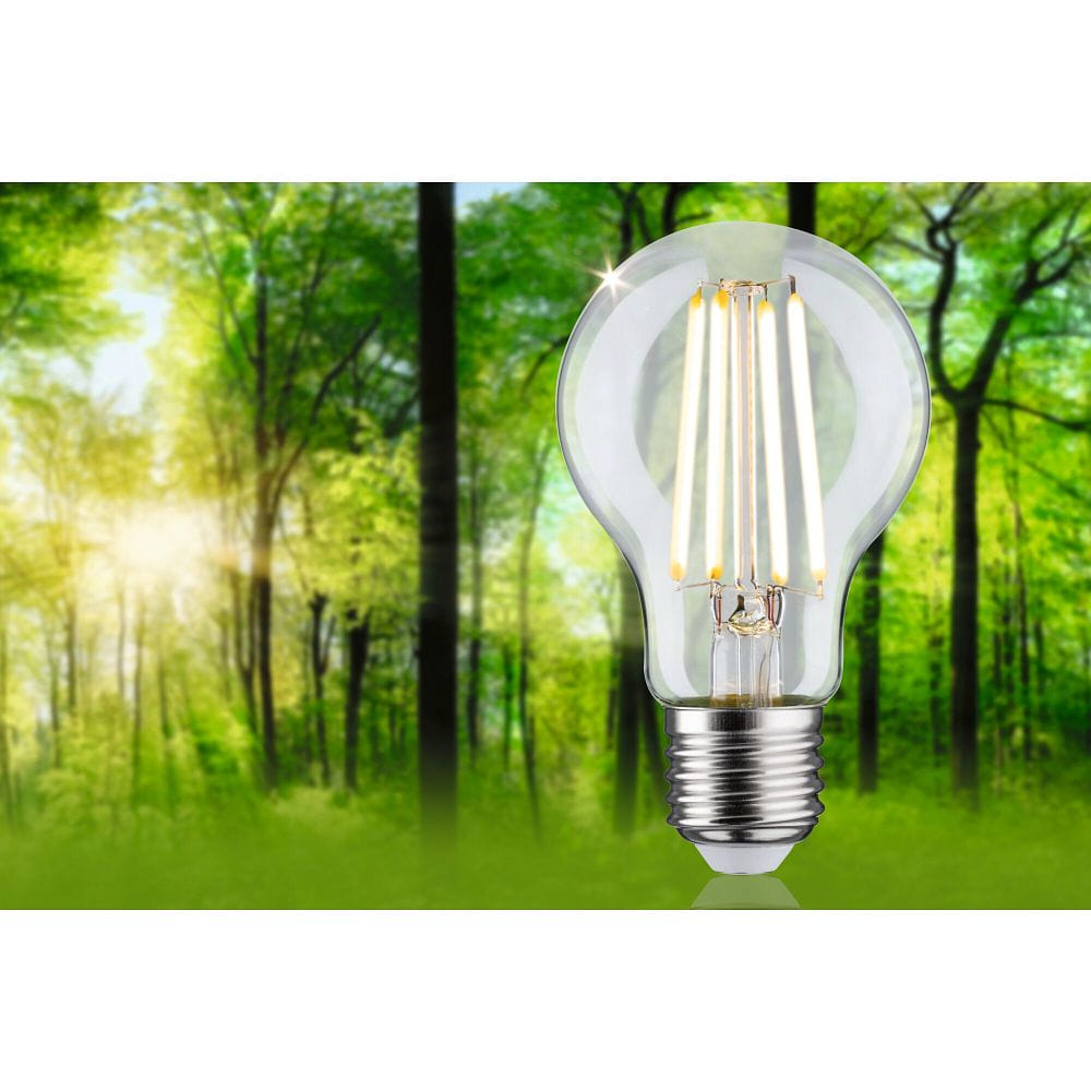 The LED Filament Bulb ECO-LINE AGL from Paulmann combines modern LED technology with the timeless look of a classic incandescent bulb. With a power consumption of 7.2 watts, it produces warm white light (3000K) and offers an impressive brightness of 1521 lumens. The clear glass base and traditional A60 bulb shape provide a decorative and elegant appearance that harmoniously integrates into various lighting fixtures.