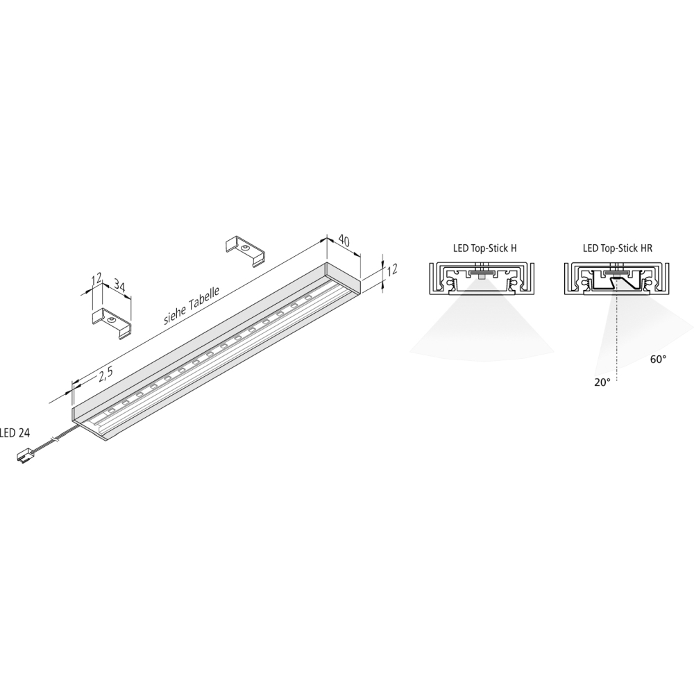 Flat surface mount LED luminaire LED Top-Stick H, IP20, with LED 24 connecting cable, CRi> 95, 61cm, 15W 4000K