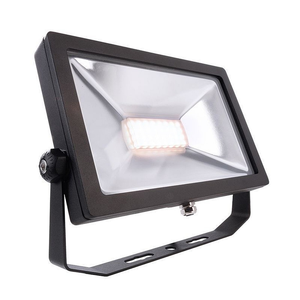 The floodlight is made of high-quality aluminum die-cast and glass, making it particularly robust and durable. With a weight of 2.1kg and dimensions of 29x24.4x4.05cm, it offers a compact yet powerful lighting solution for outdoor use.