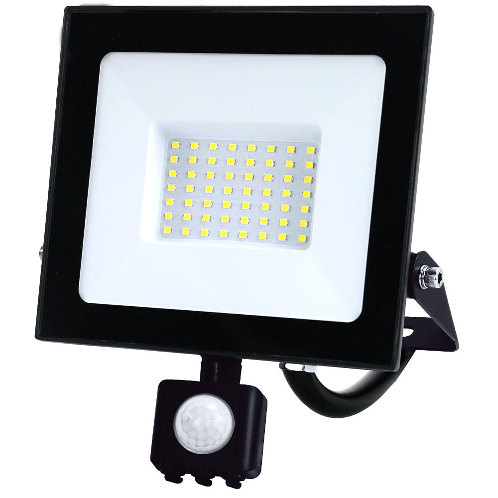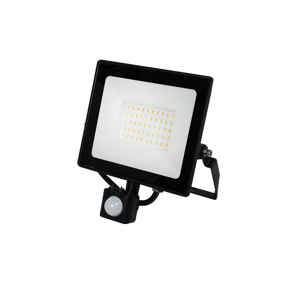 The LED floodlight is equipped with a PIR sensor that provides automatic lighting. The motion sensor is adjustable and responds to movements within a specific range. This helps save energy and increase security.