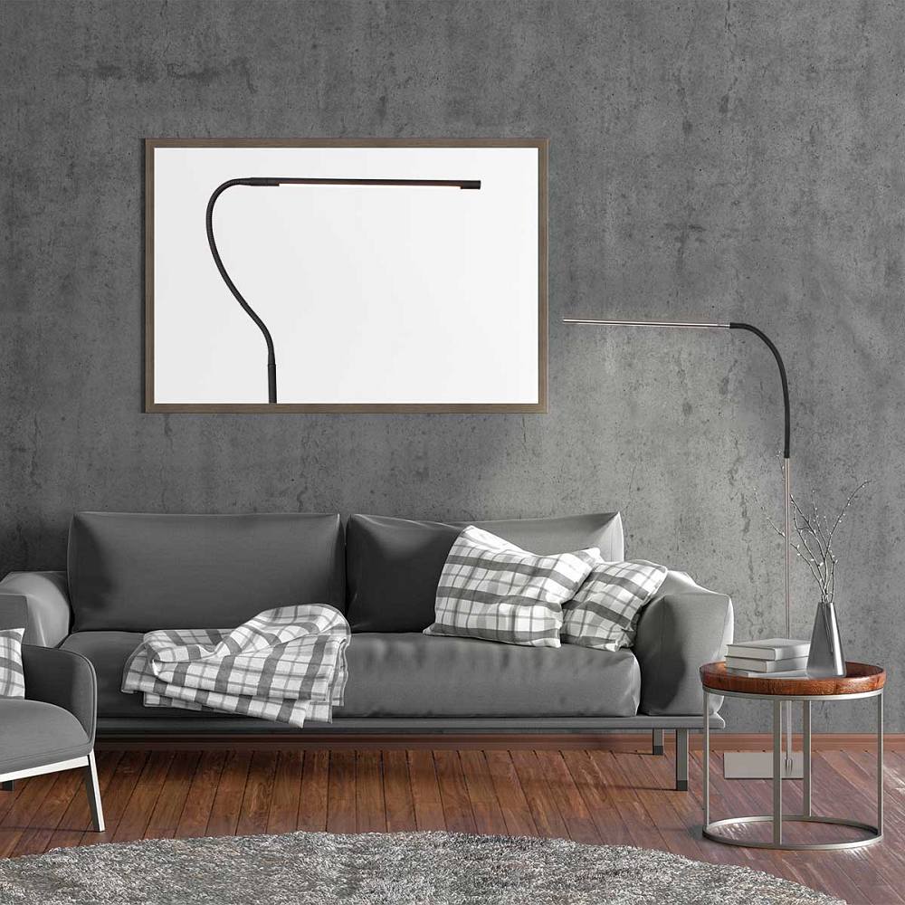 The floor lamp is made of a combination of glass, plastic, metal, and polyvinyl chloride (PVC). The design is modern and contemporary, suitable for various interior styles. Thanks to the rubberized flex arm, the lamp can be individually adjusted to create an optimal lighting situation.