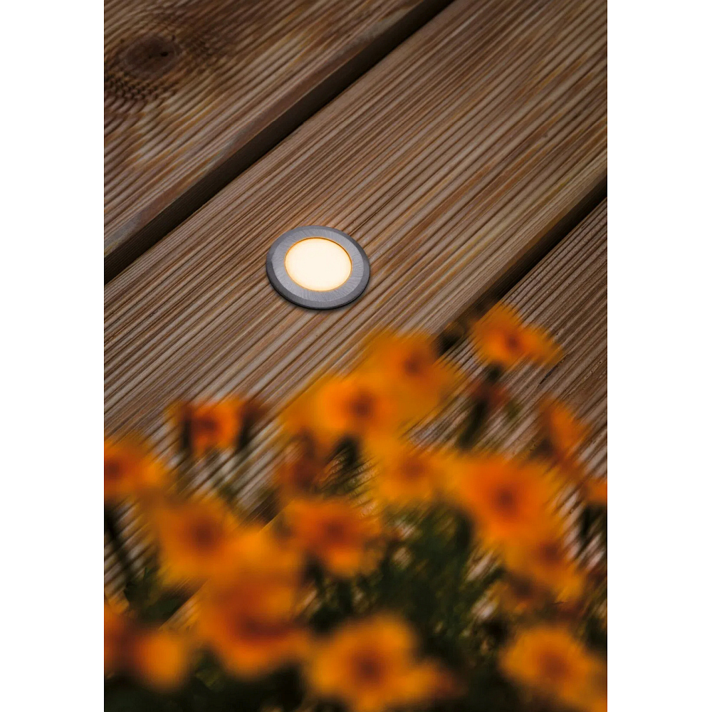 floor recessed luminaire LED GOLD LIGHT POINT Ø 5CM rigid, passable, switchable, insect friendly IP67, brushed aluminium