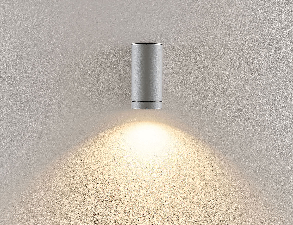 Gevelspot SHORELINE PRO GU10 ROUND 1-vlams, cilindrisch, met lamphouder GU10 IP65, lichtgrijs
