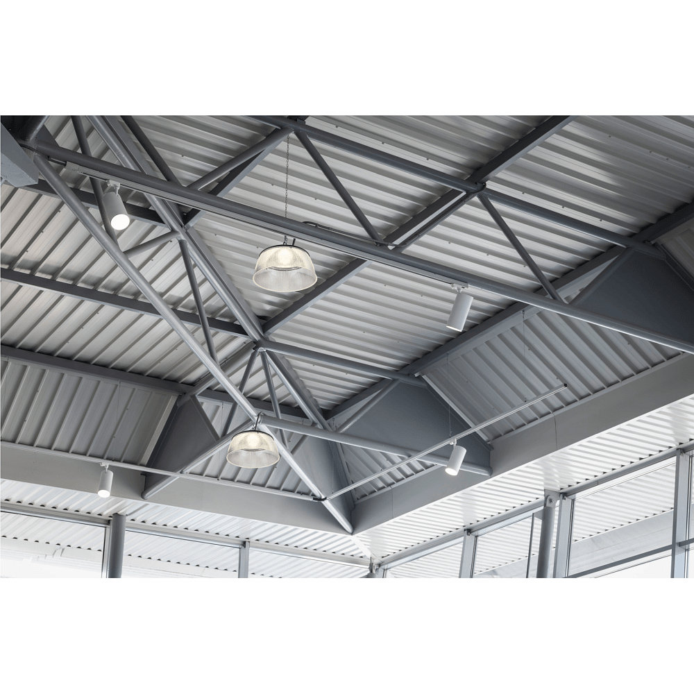 Thanks to the IP65 protection rating, the LED high bay luminaire is protected against all-round splashing water and dust. The installation of the luminaire is simple and straightforward. Separate connection lines for power supply and the DALI control signal ensure a safe and reliable installation.