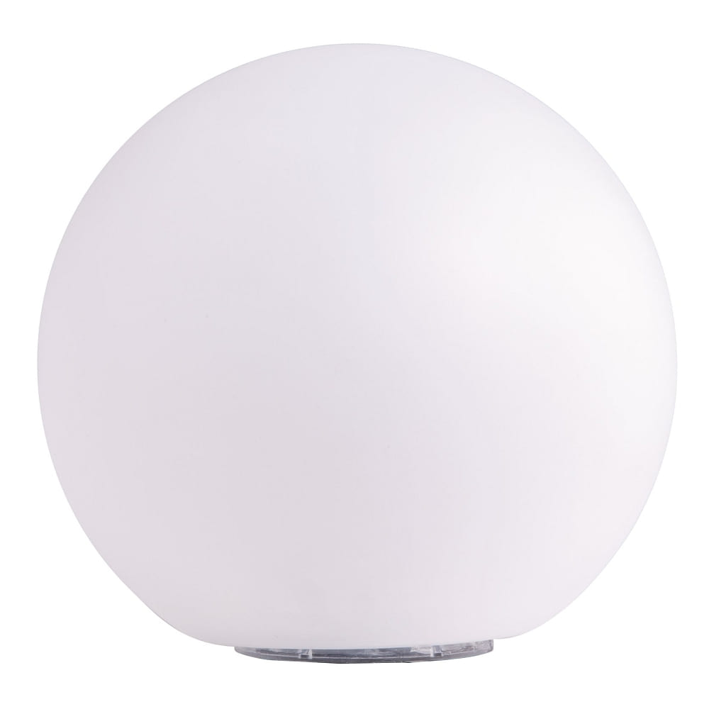 Solar LED Sphere Light BOULE, IP44, 4000K, Replaceable Battery, with Ground Spike + Sensor, Plastic, White