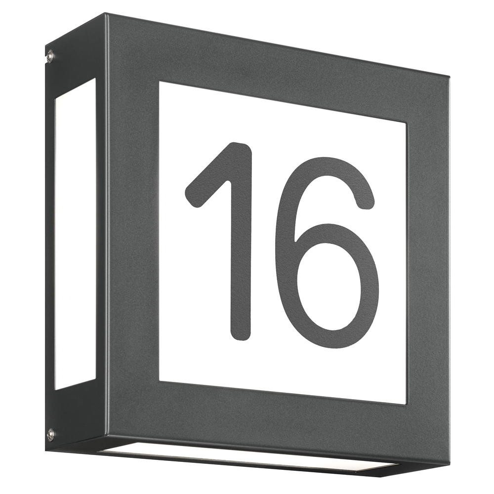 House number luminaire AQUA LEGENDO, 2 digits (affixed), 2x E27, stainless steel / opal glass, anthracite
