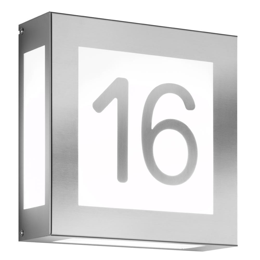 House number luminaire AQUA LEGENDO, 2 digits (affixed), 2x E27, stainless steel / opal glass, brushed