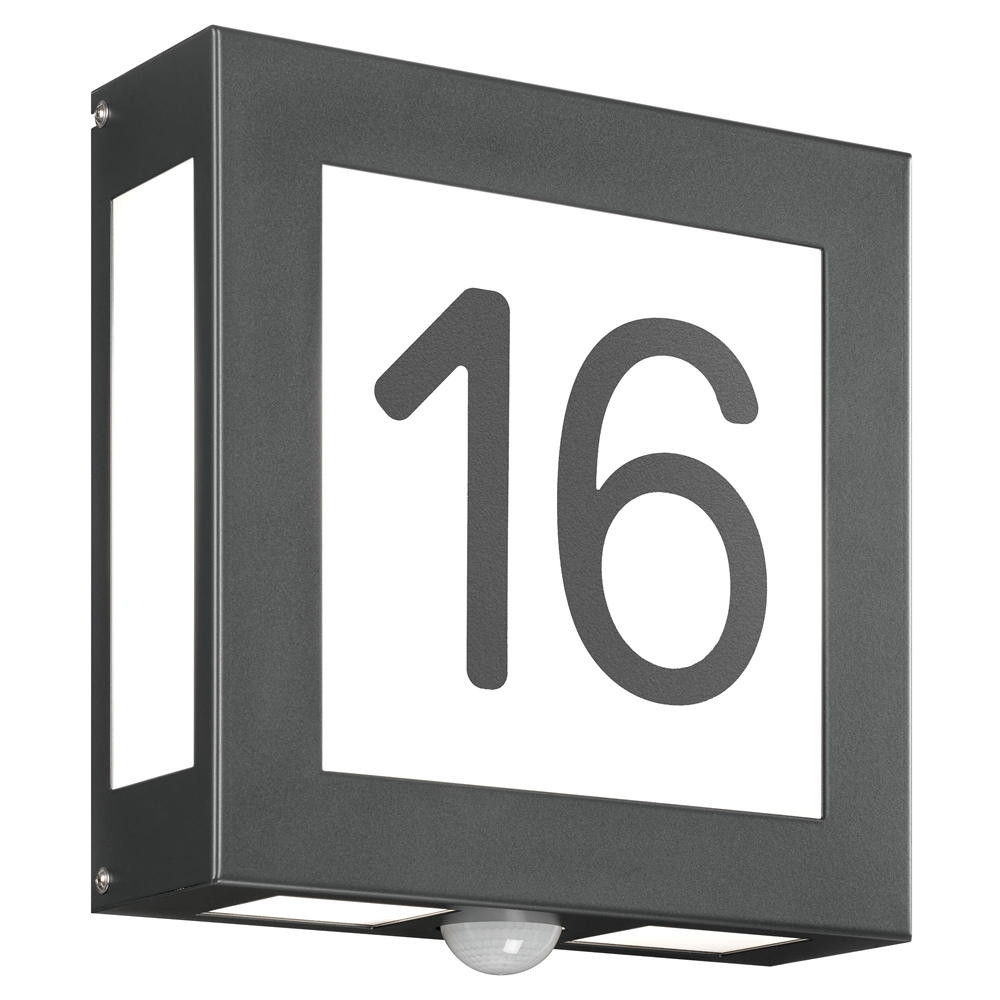 House number luminaire AQUA LEGENDO with motion detector, 2 digits, 2x E27, stainless steel / opal glass, anthracite