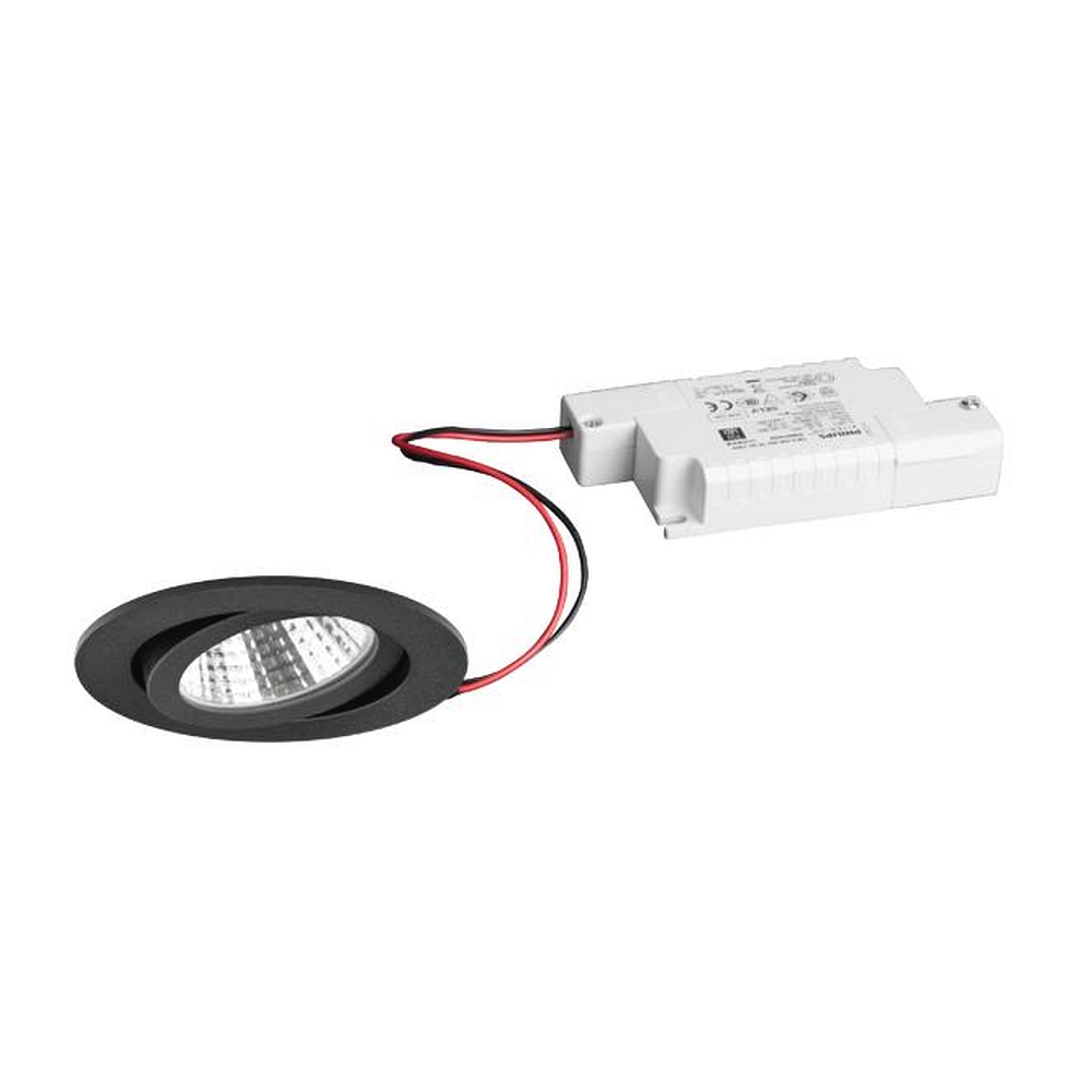 Inbouwarmatuur rond, draaibaar IP20, zwart dimbaar 6W 640lm 3000K 20-40° 20-40° CRI 80-89