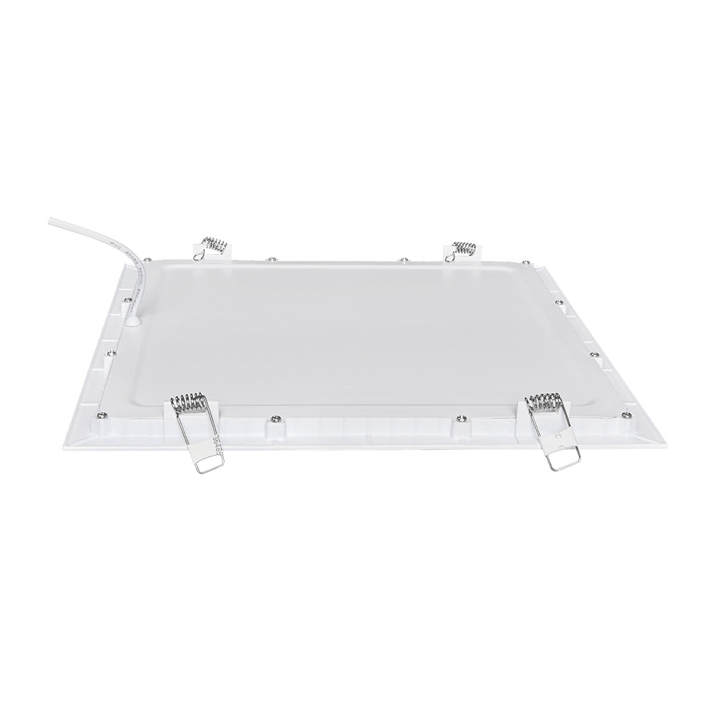 Het paneel wordt bevestigd aan het plafond via een rechthoekige opening van 27,8 x 27,8 cm. De levering bevat verbindingskabels, lampfittingen, veerclips en een connector, die de installatie vergemakkelijken. Het product werkt op een spanning van 28 volt DC en vereist een aparte constante stroom driver van 350 mA, niet inbegrepen. De dimfunctie hangt af van de gebruikte driver en maakt integratie in slimme gebouwbeheersystemen mogelijk wanneer een DALI-compatibele driver wordt gebruikt.