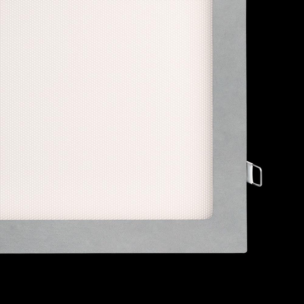 Het inbouw LED-panel FLAT 300 Q SCCT van nobilé valt op door zijn elegante design, matte titaniumkleur en compacte afmetingen van 29 x 29 cm met een inbouwdiepte van slechts 2,5 cm. De vierkante vorm en de microprismatische diffuser in PMMA zorgen voor een gelijkmatige lichtverdeling zonder verblinding met een stralingshoek van 90°. Met een gewicht van 0,84 kg en een uitsnijdingsmaat van 27,8 x 27,8 cm is het apparaat ideaal voor plafondmontage. De behuizing van hoogwaardig aluminium is gelakt en biedt een duurzame en stabiele constructie.