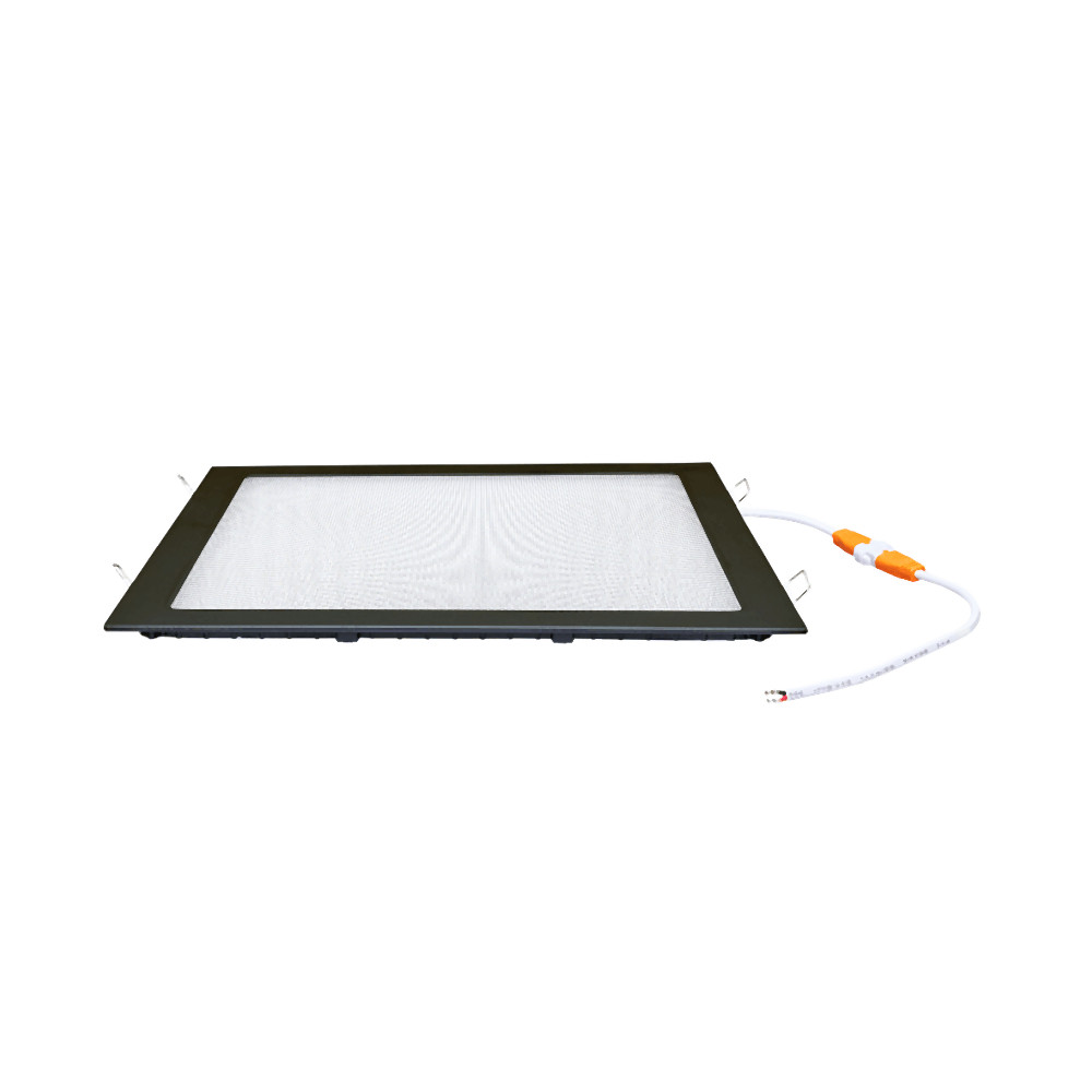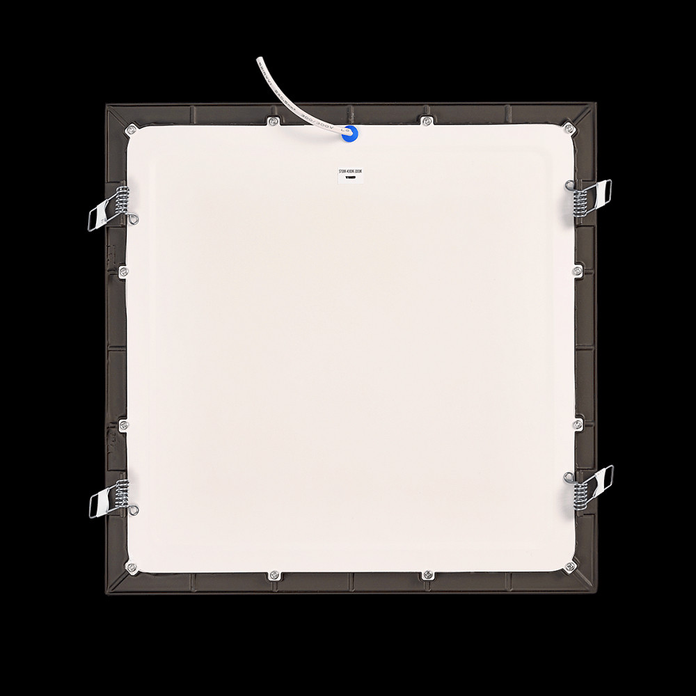 De behuizing van het paneel is gemaakt van gelakt aluminium, wat stabiliteit en een aantrekkelijk uiterlijk garandeert. Het licht wordt uitgestraald via een oppervlak van 24,5 x 24,5 cm, dat het licht symmetrisch en gelijkmatig verdeelt. Met een inbouwdiepte van slechts 2,5 cm is het paneel bijzonder slank en integreert het discreet in de plafondconstructie. De aansluitkabel van 45 cm, samen met de meegeleverde accessoires zoals stekker, schakelaar en veerclip, vergemakkelijkt de installatie.