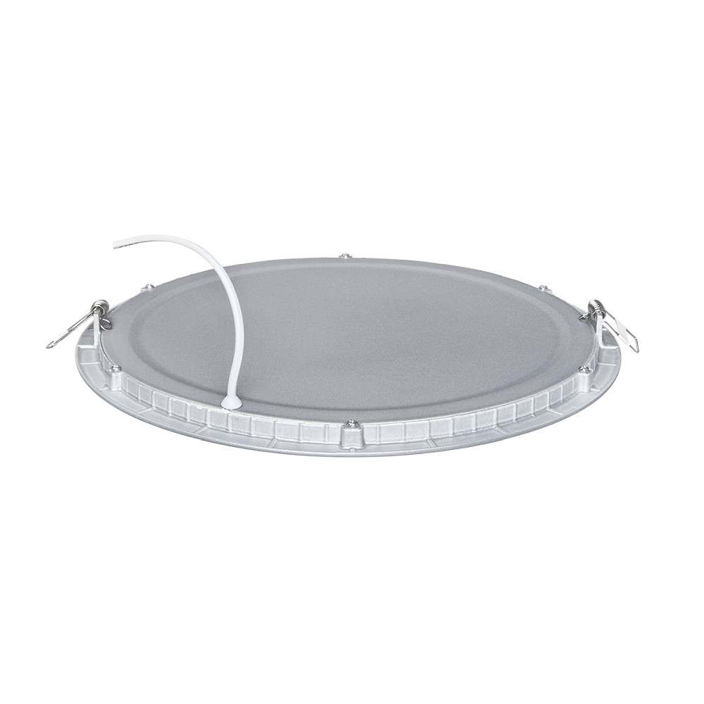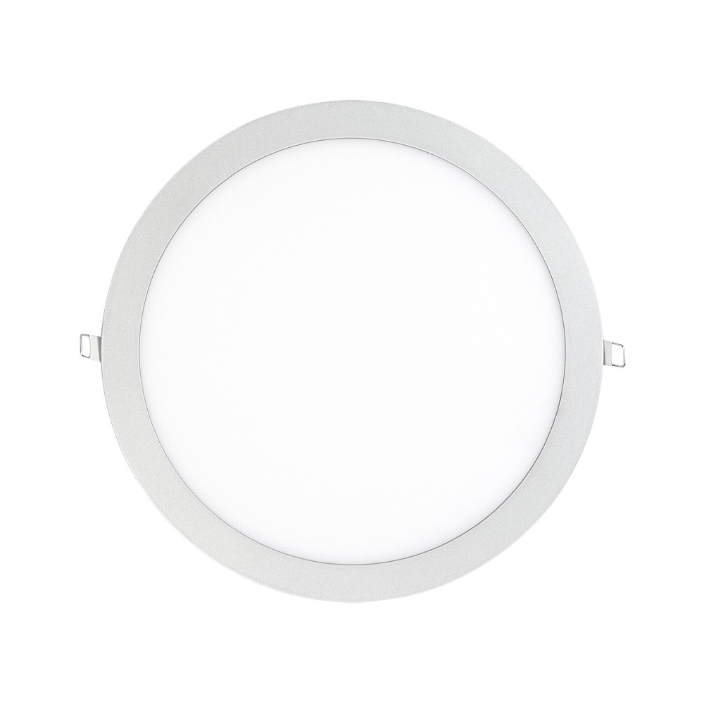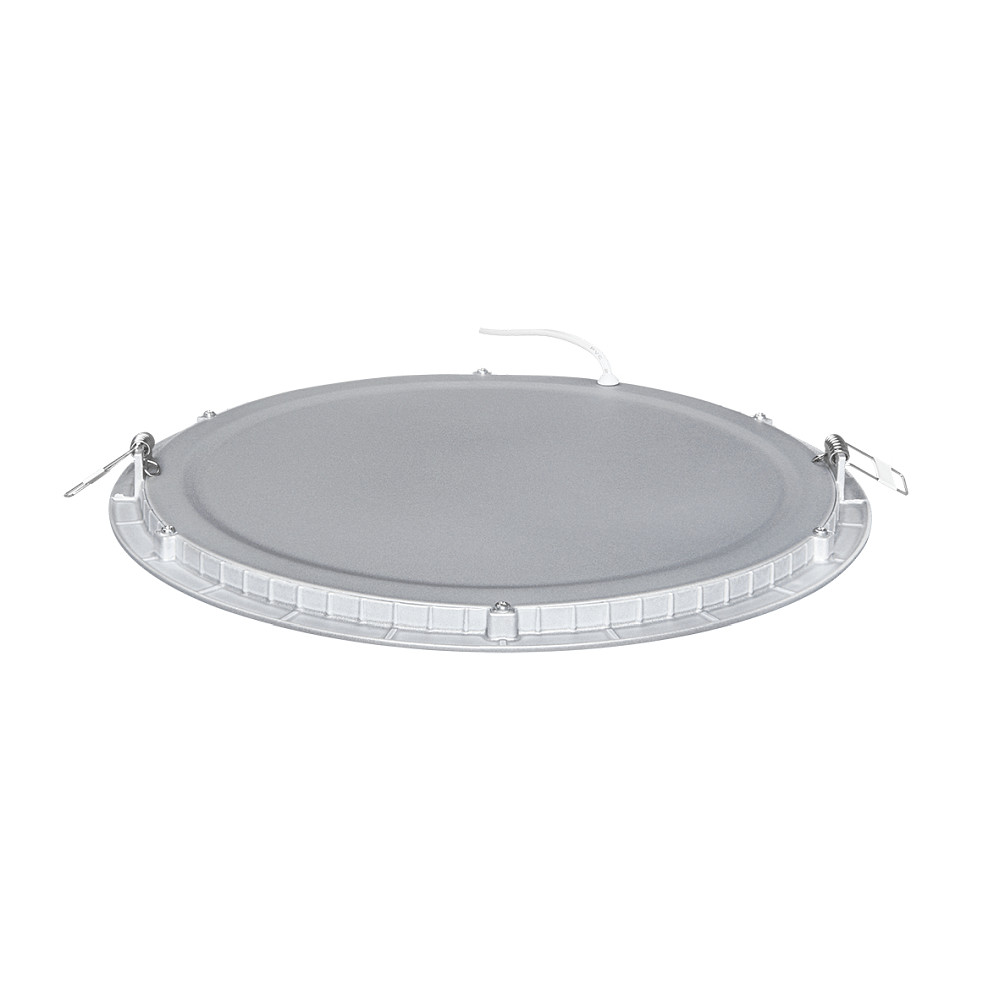 Het ingebouwde LED-paneel FLAT 300 R van nobilé valt op door zijn slanke design en efficiënte lichtopbrengst. Met een diameter van 29,5 cm en een installatie-diepte van slechts 2,5 cm is deze lamp ideaal voor montage in verlaagde plafonds. De behuizing van aluminium met een matte titanium afwerking, gecombineerd met een microprismatische PMMA-diffuser die bestand is tegen vergeling, zorgt voor een duurzame en stabiele constructie. Het paneel is speciaal ontworpen voor gebruik in droge binnenomgevingen en biedt een gelijkmatige en gerichte lichtverdeling in alle richtingen.