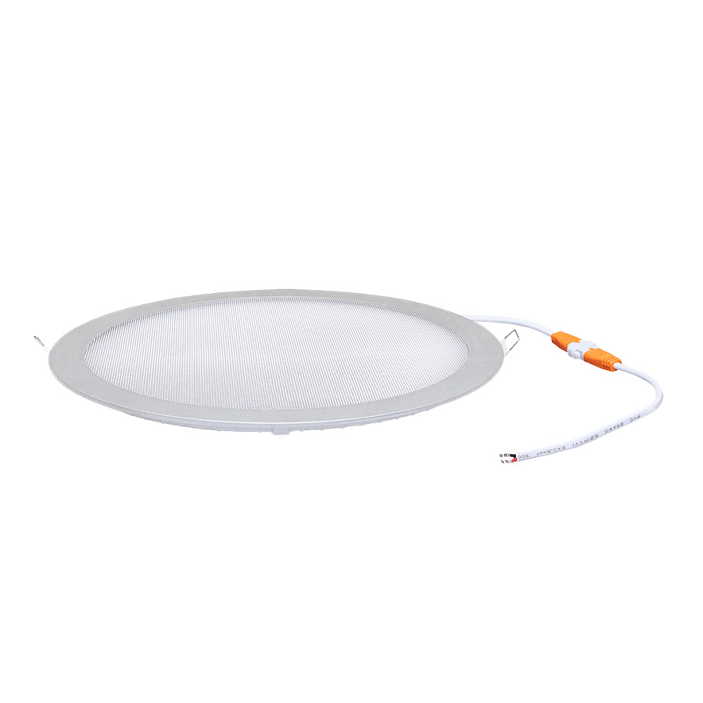Het inbouw LED-paneel FLAT 300 R SCCT van Nobilé valt op door zijn slanke en moderne design, met een diameter van 29,5 cm en een inbouwdiepte van slechts 2,5 cm. Het apparaat is speciaal ontworpen voor inbouwmontage en biedt symmetrisch en gelijkmatig verdeeld licht. De behuizing is gemaakt van gelakt aluminium en is voorzien van een microprismatisch PMMA-diffuser, die zorgt voor een aangename en uniforme lichtverdeling en effectief verblinding vermindert.