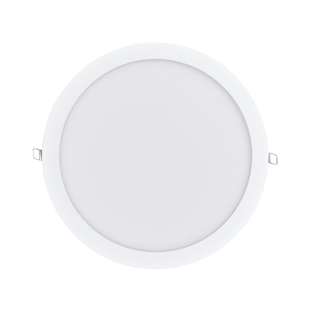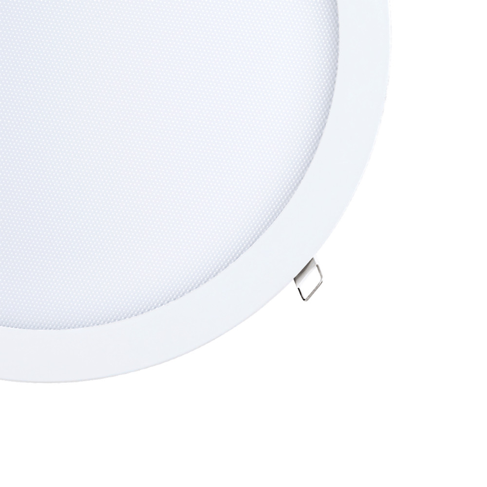Het LED-paneel wordt geleverd met aansluitkabel, stekker, veerclips, lichtkleurenschakelaar en connector, wat de installatie vergemakkelijkt. De inbouwdiepte is slechts 2,5 cm en de uitsnijdiameter is 28 cm. Het apparaat is dimbaar, waarbij de regelmethode afhangt van de gebruikte controller. Met een compatibele DALI-controller kan het paneel ook worden geïntegreerd in intelligente gebouwautomatiseringssystemen.