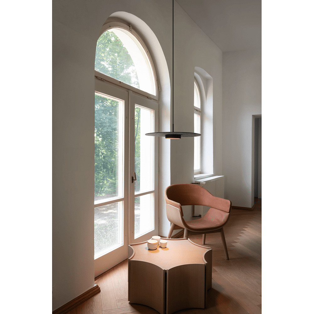 De lampenkap voor GRIP! FLAT van SLV valt op door het moderne en eenvoudige ontwerp. Met een diameter van 50 cm en een hoogte van slechts 0,6 cm past de lampenkap harmonieus in verschillende verlichtingsconcepten. Het elegante vilten oppervlak zorgt voor een aangename lichtverdeling en creëert een warme sfeer.