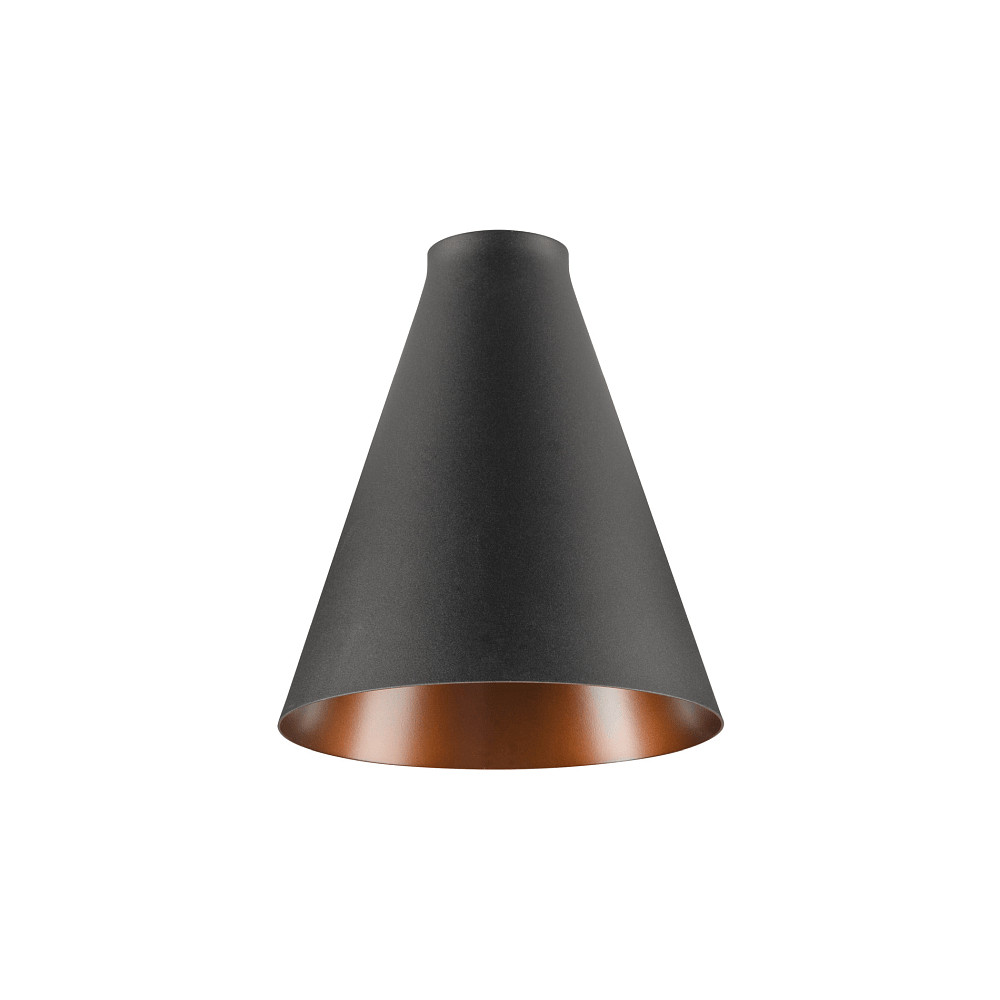 De lampenkap van de LALU® CONE 15 MIX&MATCH valt op door zijn moderne en elegante ontwerp in zwart en brons. Met een diameter van 15,2 cm en een hoogte van 17 cm past deze lampenkap harmonieus in verschillende interieurconcepten. De buitenkant, slank maar robuust, geeft elke lamp een nobele uitstraling, zowel eigentijds als tijdloos.