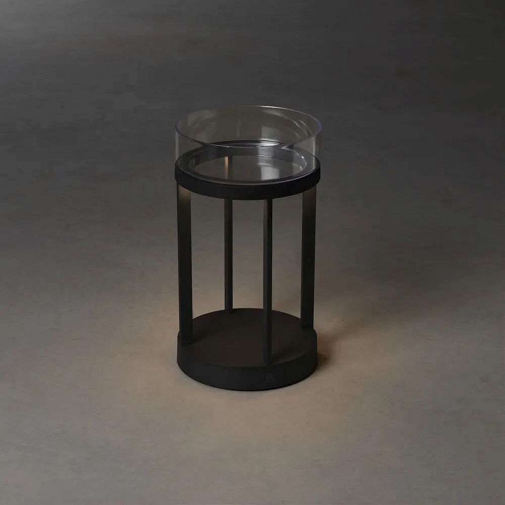 Lantaarn CHIETI CCT Switch, dimbaar, met batterij, met plank IP54, zwart, transparant dimbaar