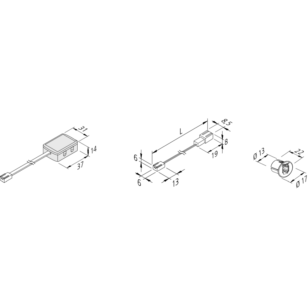 LED 24 recessed plug / power plug element, suitable for wood, from 10mm thickness