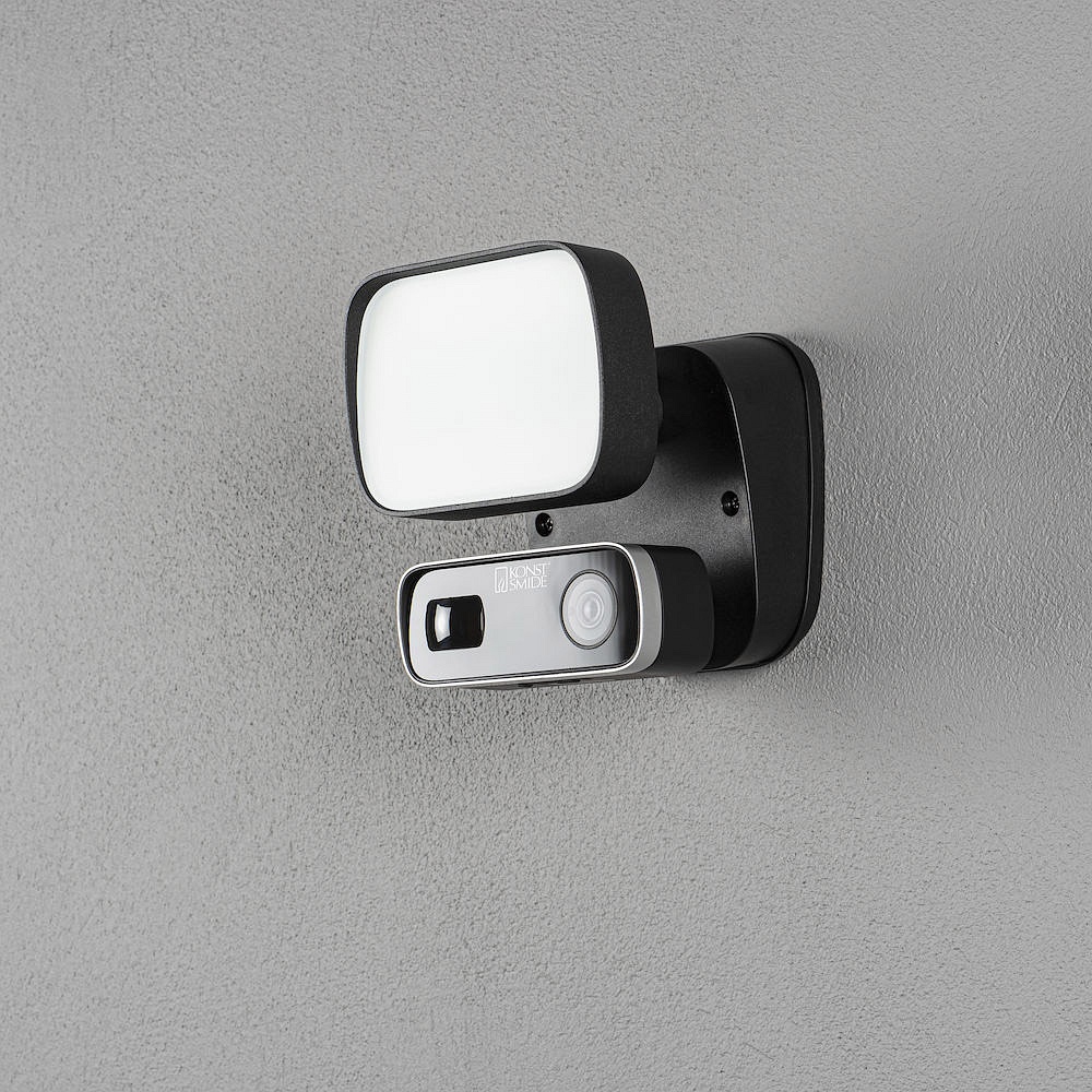 LED AußenWall luminaire SMARTLIGHT SMALL, with sensor + HD camera, 10W 5000K 1000lm, black metal / plastic