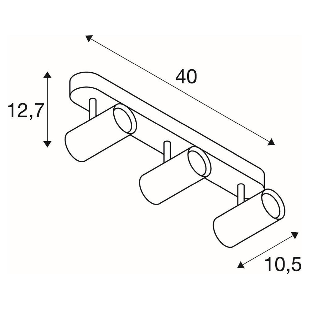 The ceiling light has dimensions of 40x10.5x12.7 cm and is made of aluminum. It weighs 1kg and has an average lamp life of 30000 hours. The installation is done through surface mounting and the protection class is 1. The operating voltage is between 220-240V~ and the rated current is sec. 0.35A. The mains frequency is 50/60Hz.