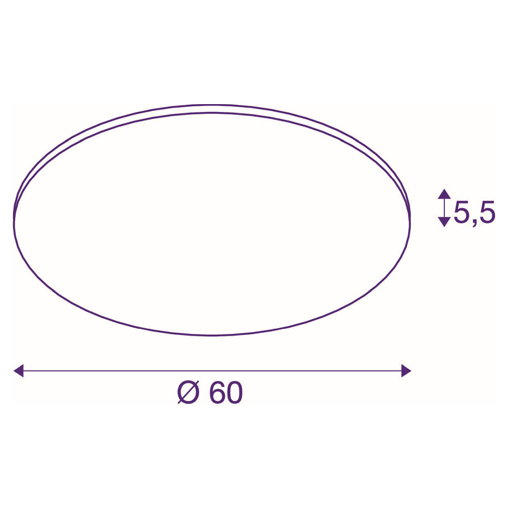 The modern LED ceiling light PANEL 60 ROUND is a flat and dimmable lighting solution for your home, office, or gastronomy. With a size of Ø 60 cm and a construction height of only 5.5 cm, it offers a strong and homogeneous light distribution.