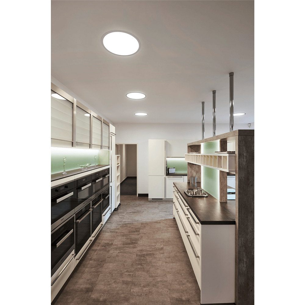 Thanks to its symmetrical light distribution, the recessed ceiling light is ideal for use in indoor spaces. Its application range extends to ceilings, where it creates a harmonious atmosphere with its round design. The open cable end allows for easy installation in a 61cm ceiling cutout.