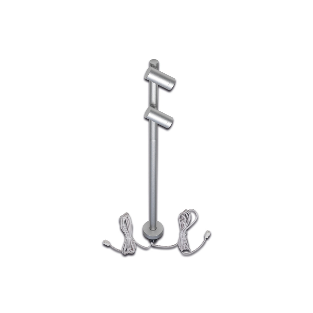 Hera LED Duo Spot for object lighting, seamless height up to 30cm, 24V DC, CRi>90, rotatable, swiveling, 2x 1.5W 4000K 38°, alu