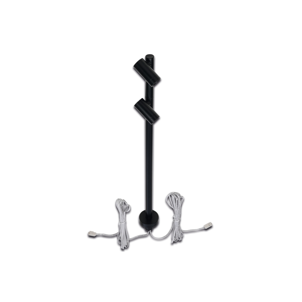 LED Duo Spot for object lighting, seamless height up to 30cm, 24V DC, CRi>90, rotatable, swiveling, 2x 1.5W 4000K 38°, black