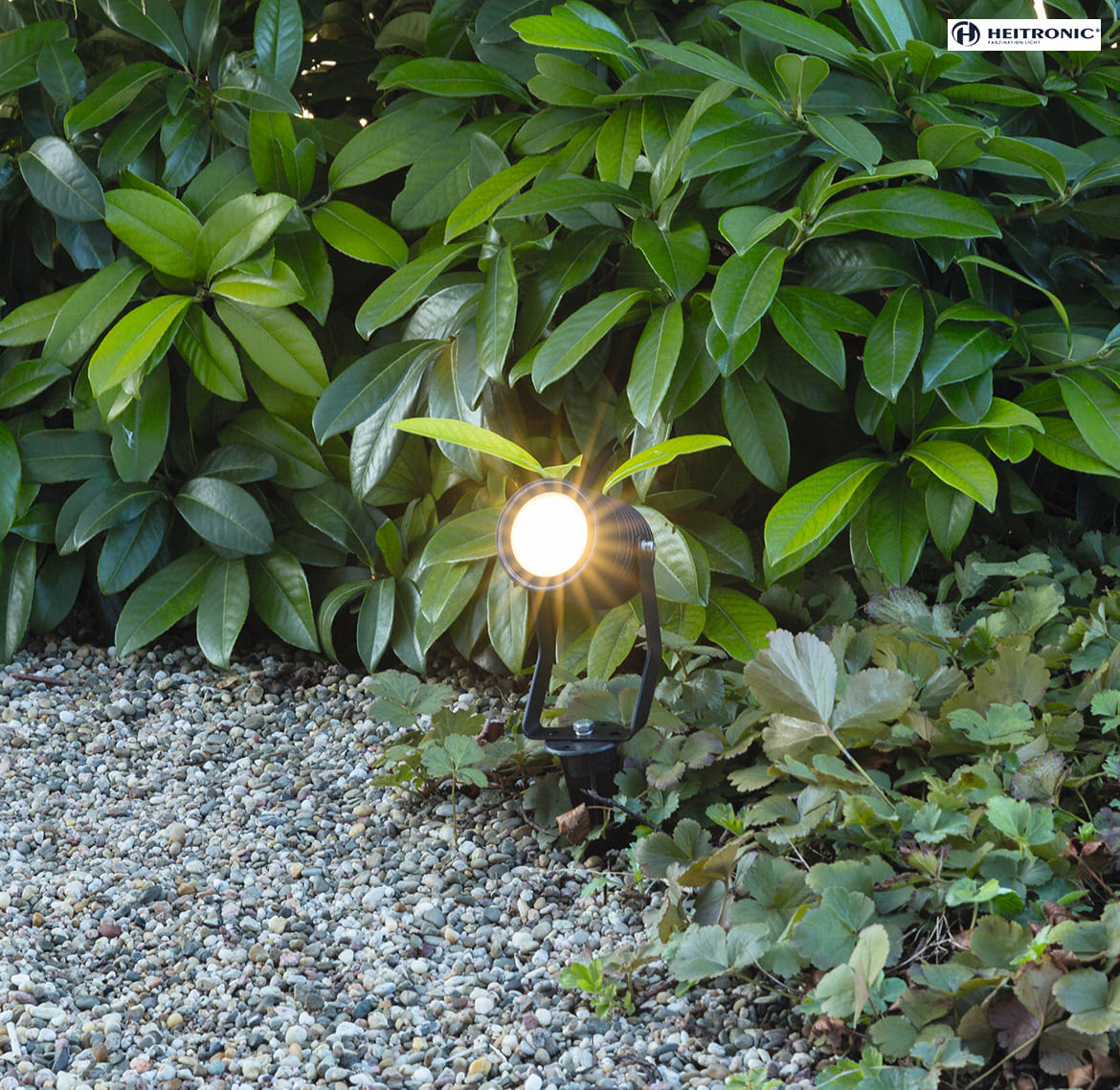 The LED ground spike spotlight PASAS is a high-quality product from the Heitronic brand, which impresses with a power of 6W and a light output of 410lm. With a color temperature of 3000K, it provides a pleasant warm white illumination in outdoor areas. Thanks to the IP65 protection rating, it is protected against dust and spray water, making it perfect for use in the garden or on the terrace.
