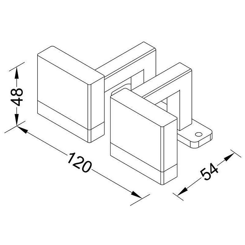 This 2-light furniture luminaire has a beam angle of 180° and an operating voltage of 220-240V AC at 50-60Hz. It features an aluminum chrome-plated housing with dimensions of 12 x 5.4 x 4.8 cm and weighs only 0.48kg. The IP20 protection class makes it ideal for indoor use.