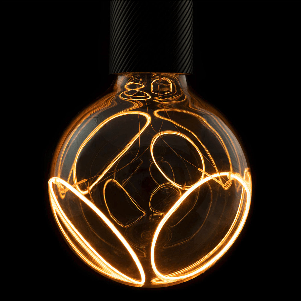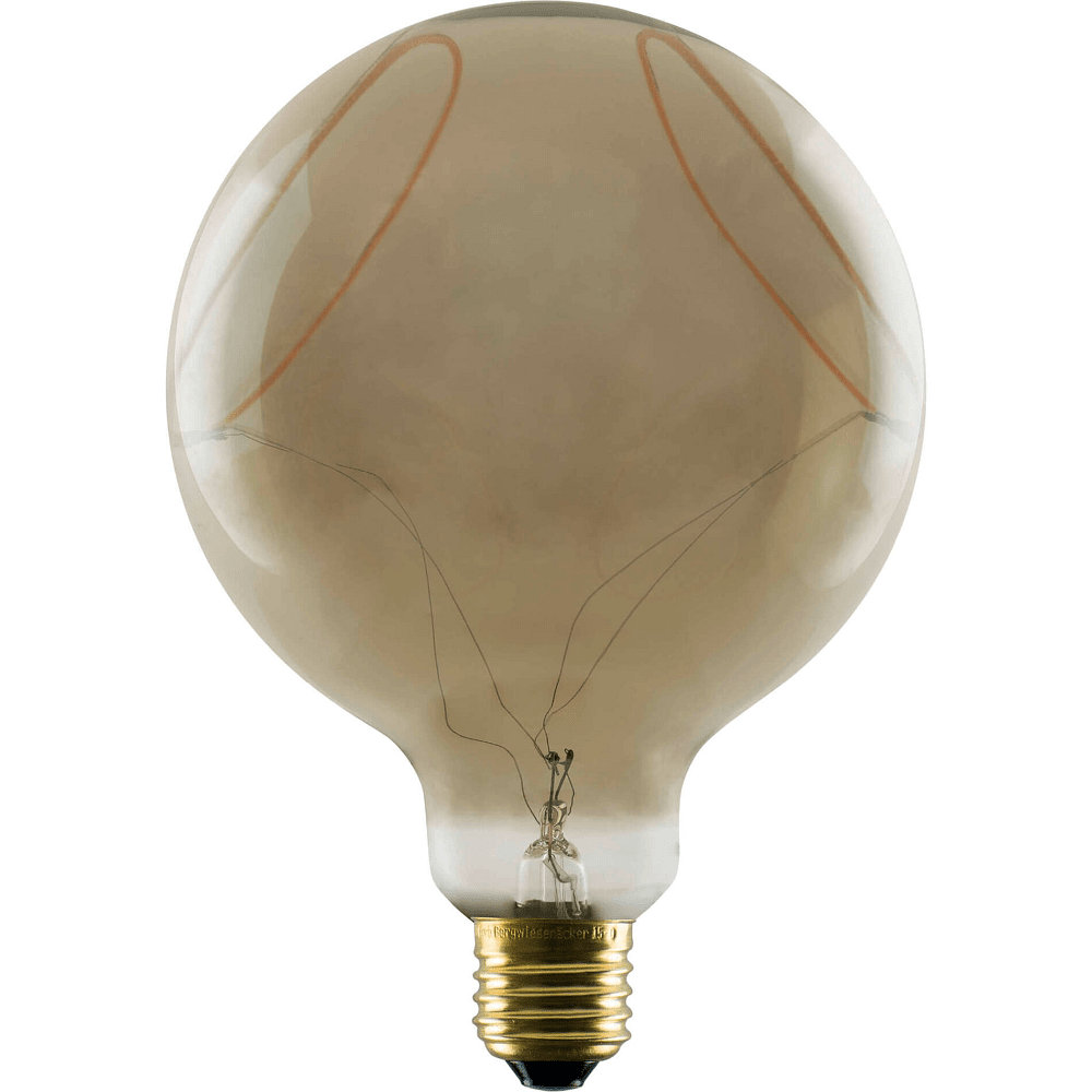 The LED bulb Globe 125 2x Inclined Soft Curve PHASE by Segula is an energy-efficient and long-lasting LED lamp. With a power consumption of only 8W and a luminous flux of 400lm, it provides a pleasant illumination in ultra warm white light color. The clear and smoky glass optic gives a modern and stylish atmosphere to any room.
