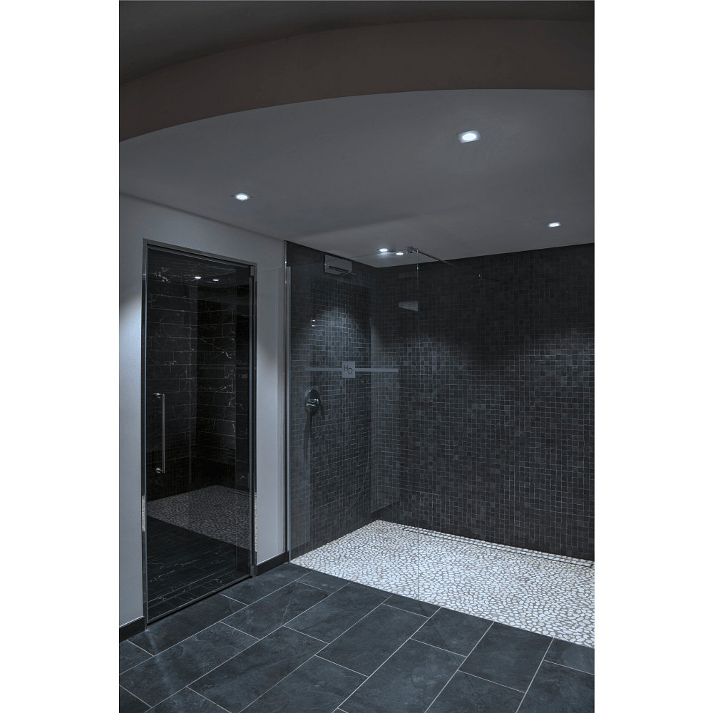 The luminaire is equipped with an IP65 protection rating, which protects it against moisture and foreign objects. The front protective glass ensures that the luminaire functions reliably even in demanding environments. The installed part of the luminaire is additionally protected with IP20, allowing for safe installation. The mounting opening has a diameter of 6 cm and the installation depth is 10 cm, enabling easy and space-saving mounting of the downlight.
