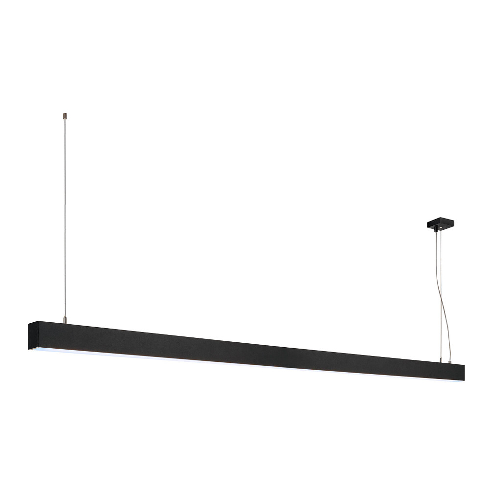 The LED pendant light GLENOS is a modern and elegant lighting solution for various indoor areas such as homes, offices, conference rooms, shops, and gastronomy. With a length of 200.5 cm and a black matte finish, it fits perfectly into any environment.