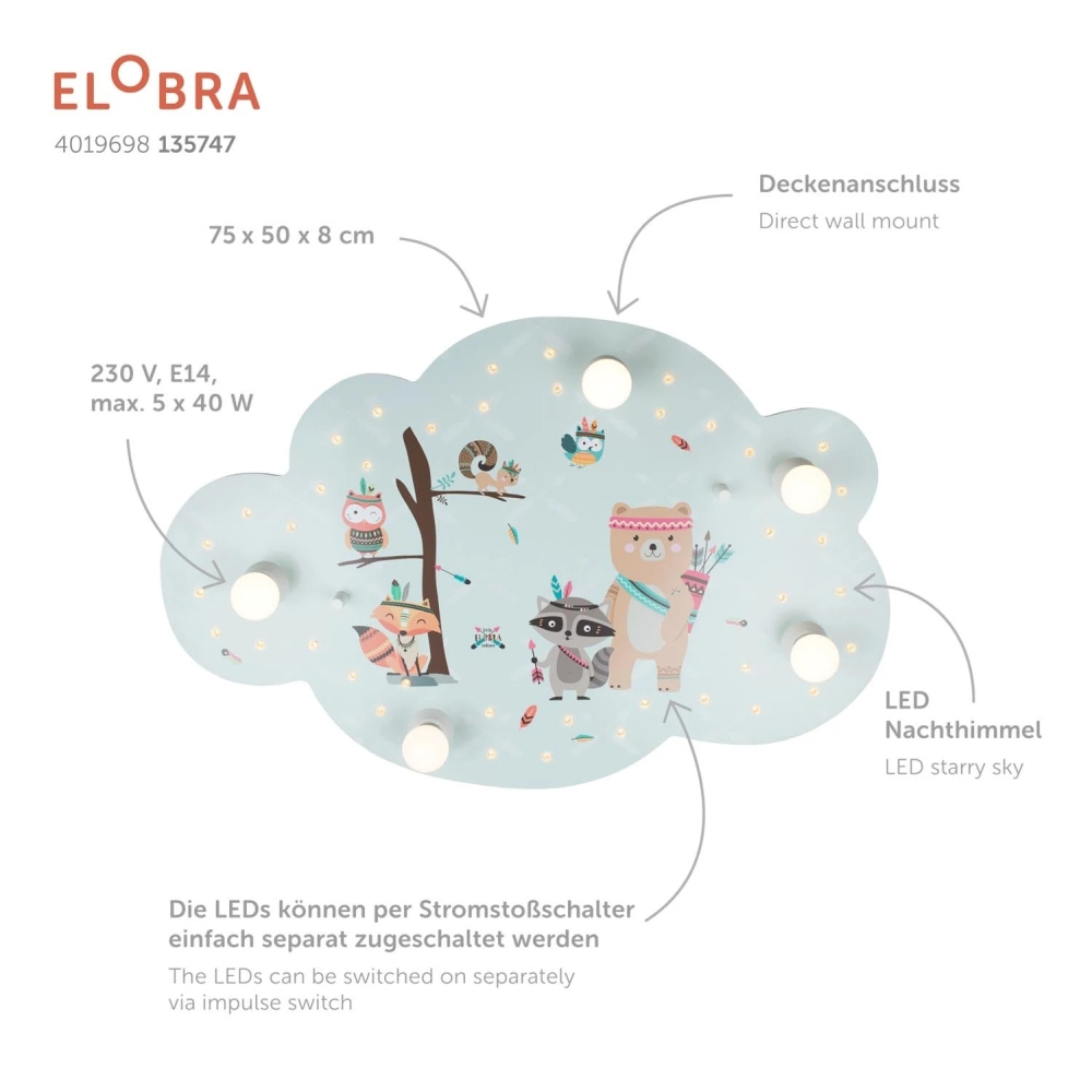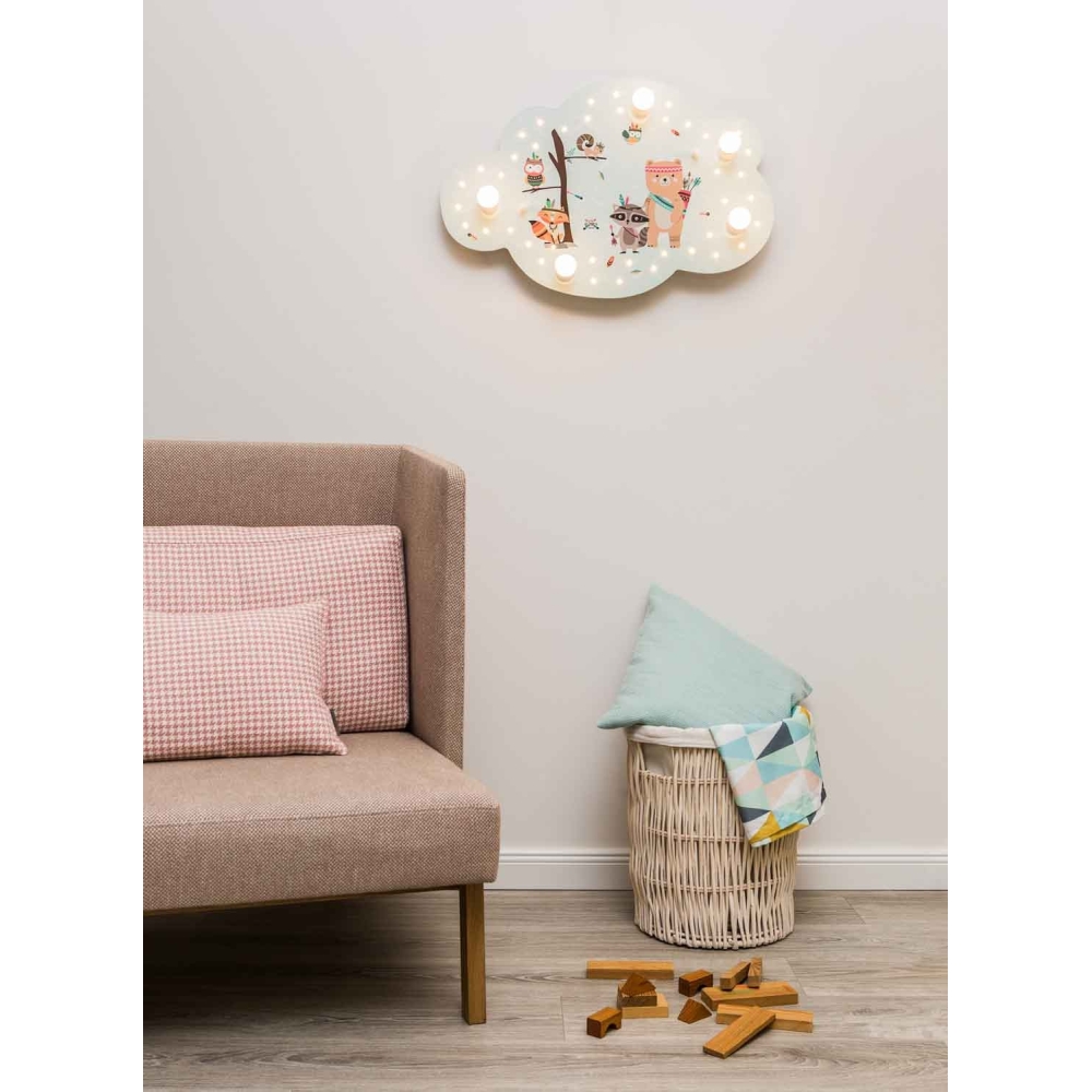 LED Picture cloud LITTLE INDIANS, 5x E14, 40 LED, mint