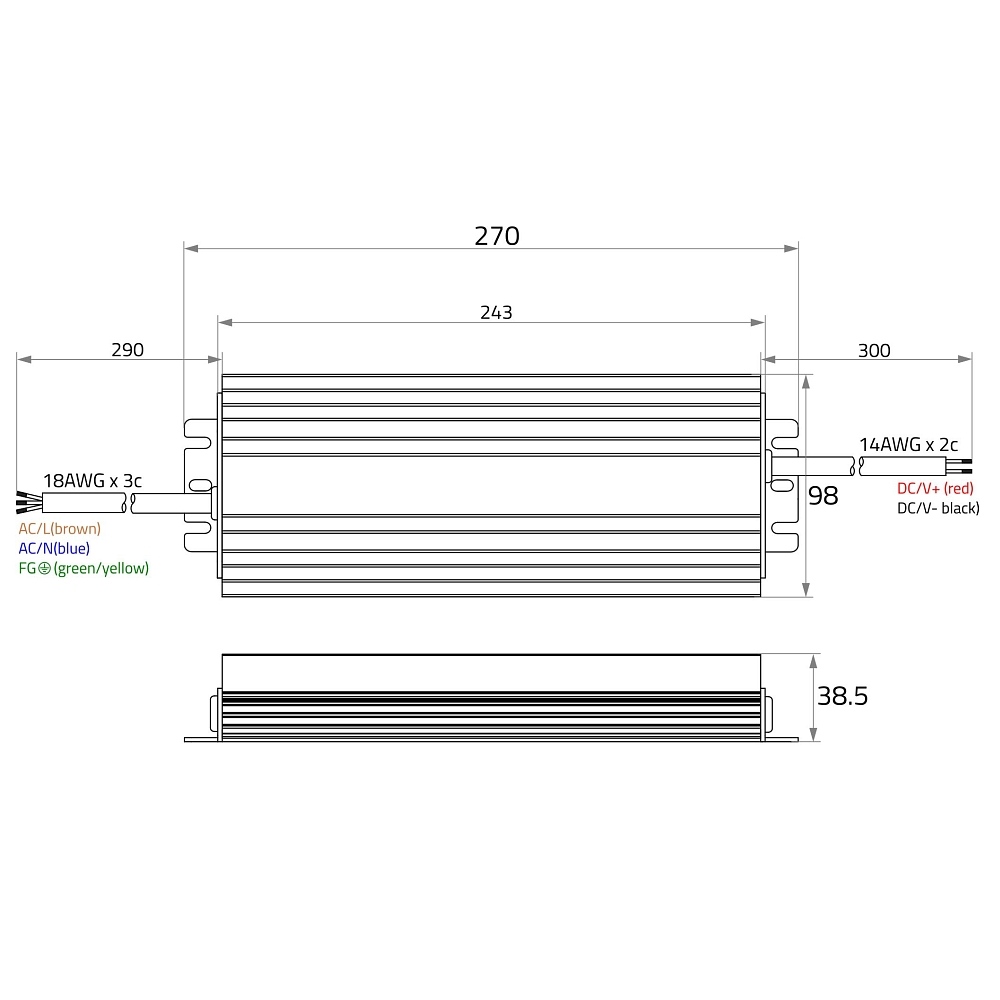 LED power supply 24V, 100-300W DIM, IP67