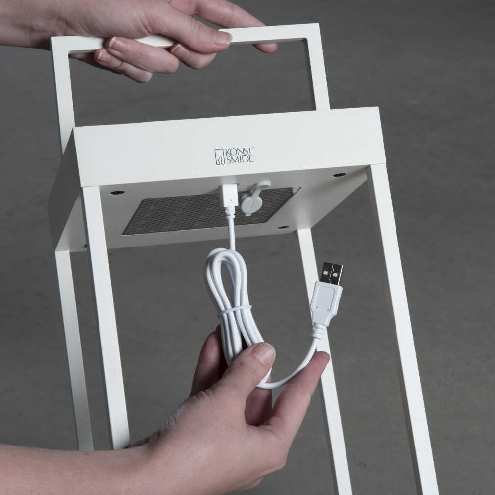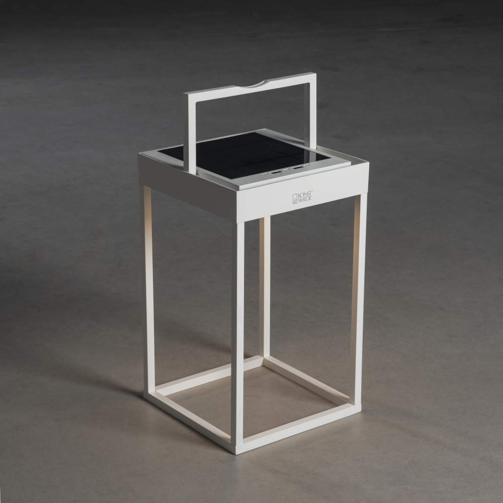 The LED Solar/USB Lantern PORTOFINO is a versatile, decorative rechargeable light for both outdoor and indoor use. With its square design in white, it harmoniously blends into any environment and provides atmospheric lighting.