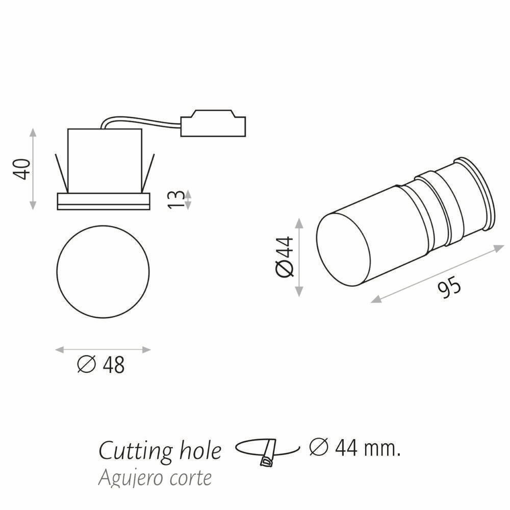 Einbautopf-Ø∕ D: 4,4∕ 9,5 cm
