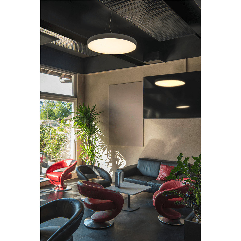This ceiling light offers additional features such as the ability to switch between warm white and neutral white light colors. Additionally, it has a coronal light outlet at the back and can be converted into a pendant light with a suspension kit. The easy integration into DALI automation concepts makes the Ceiling/Pendant Light MEDO 90 CL AMBIENT a practical and modern lighting solution.