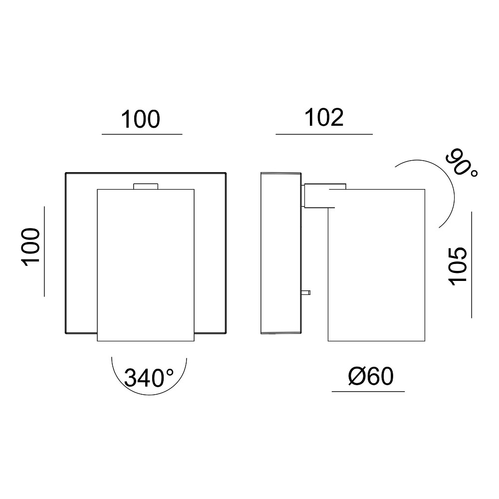 De lampenkap van de lamp, die gedraaid en gekanteld kan worden en een diameter van 6 cm heeft, maakt een optimale aanpassing van de lichtbundel mogelijk volgens jouw wensen. Dit biedt een precieze verlichting van het gewenste gebied, ideaal om te lezen of voor gerichte verlichting. De verstelbare versie is voorzien van een vierkante wandplaat die ook een geïntegreerde schakelaar bevat voor een bijzonder eenvoudige bediening.