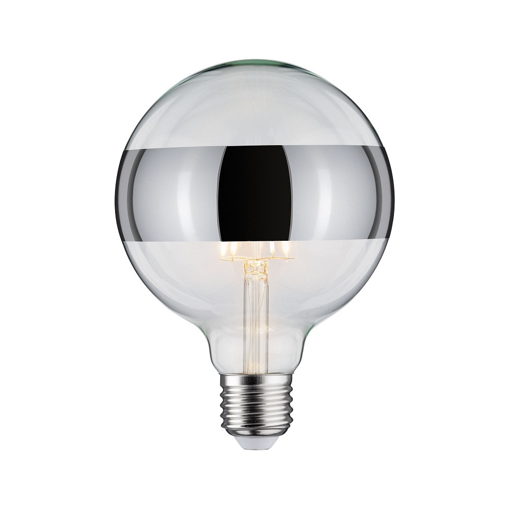 Lichtbron filament globe DECO GLOBE LED MIRROR-RING SILVER G125 helder E27 6,5W 640lm 2700K CRI >80 dimbaar