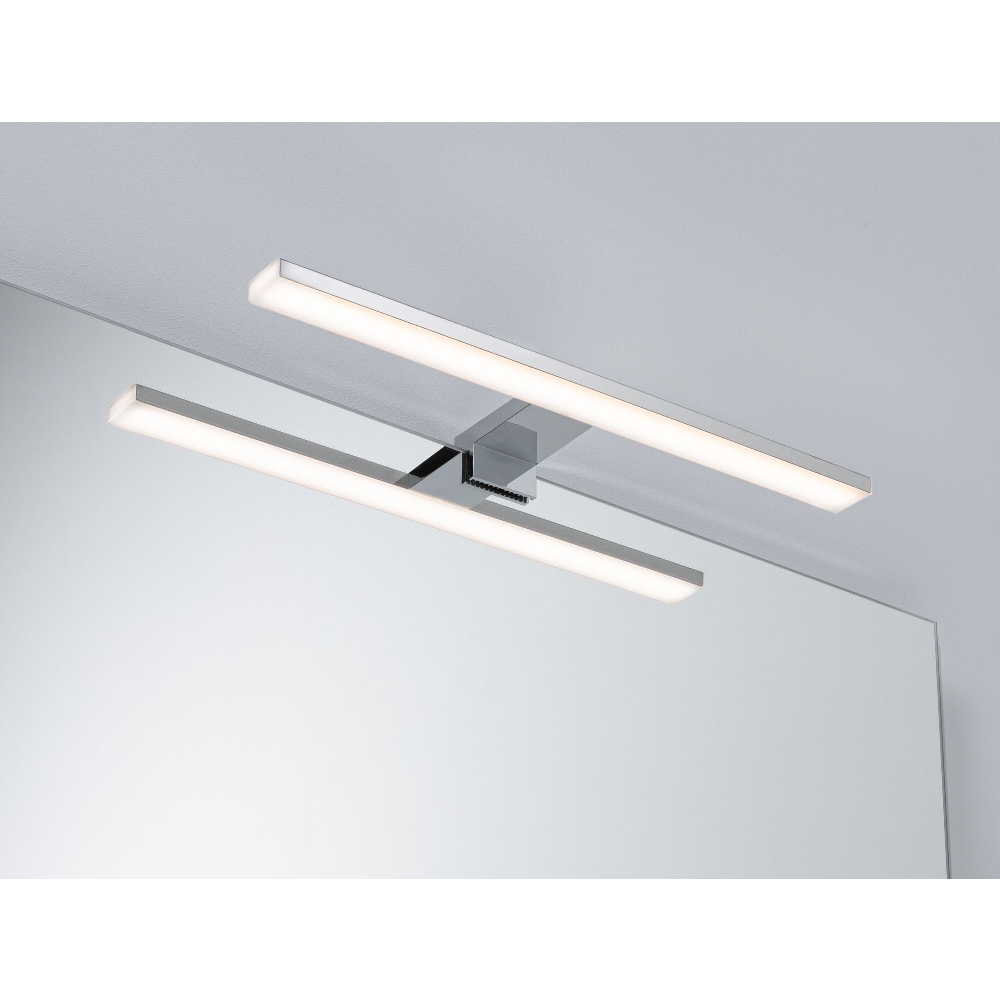 The LED mirror light HomeSpa EVIE from Paulmann is ideal for the bathroom or humid areas. With a length of 40 cm and splash protection according to IP44, it is perfect for use in such environments. Whether styling, brushing teeth, or shaving - with this mirror light, you always have the right light.