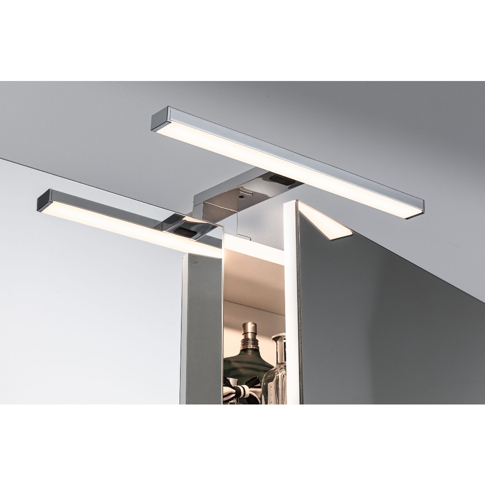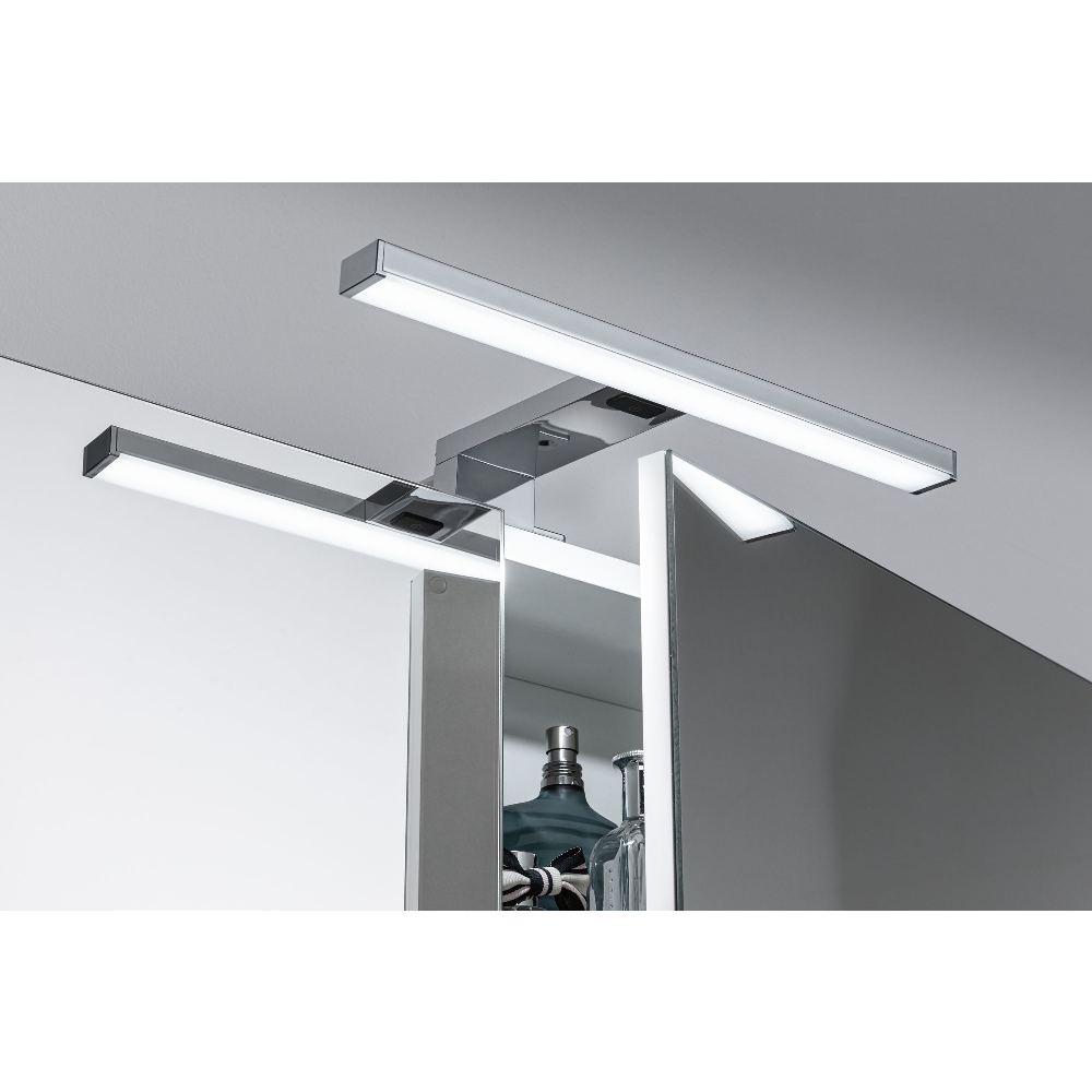 The IP44 protection class makes the mirror light splash-proof and therefore ideal for use in the bathroom or other wet areas. Thanks to its versatile applications on furniture or walls, you can flexibly install the light and stylishly illuminate your home.