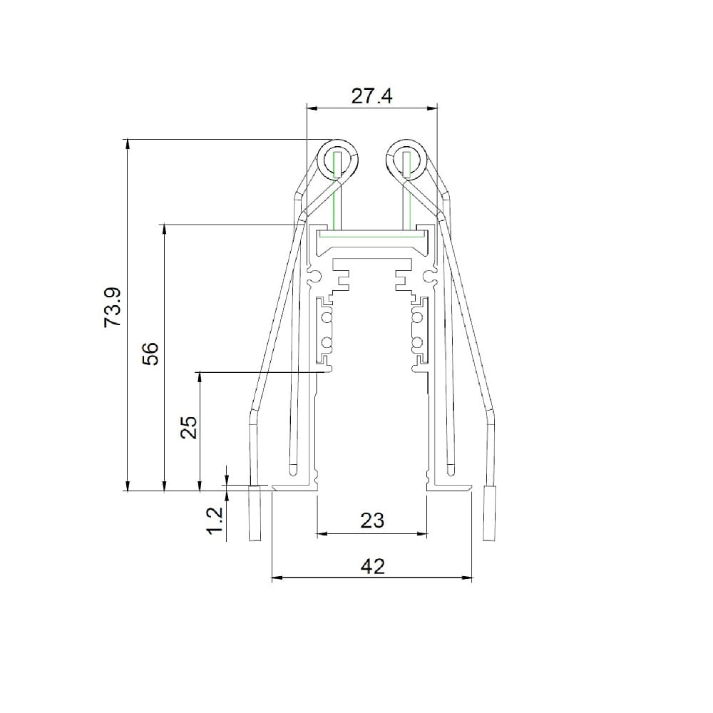 The mounting spring belongs to the product type mounting clamp. With this clamp, you can securely attach various elements such as lights or shelves to the NV mounting rail. The mounting clamp is available in stainless steel and has a size of 7.4 x 4.2 x 1 cm.