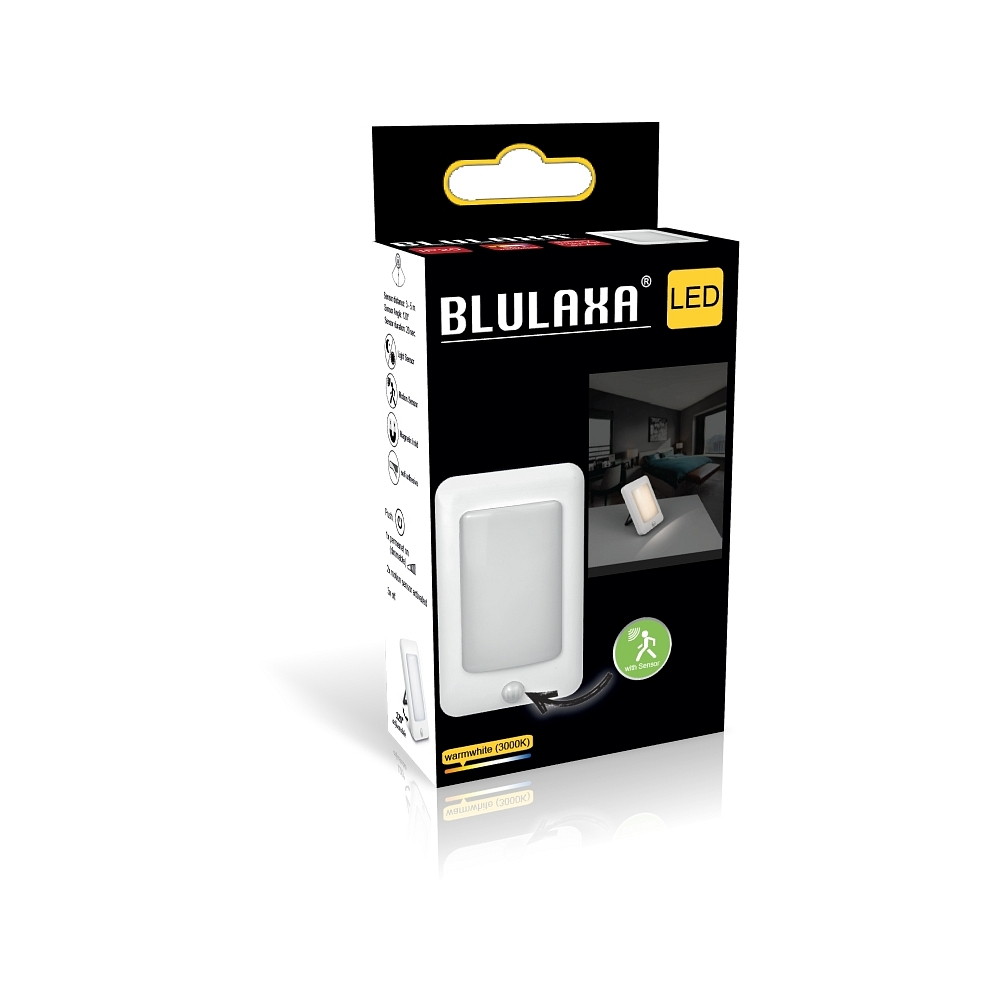 The Blulaxa brand orientation light impresses not only with its practical features such as the motion sensor and dimming function, but also with its high-quality construction. With an operating voltage of 9V= and a size of 9x14.9x3.7 cm, it is compact and easy to install. It comes with 6 AA batteries and is ready for immediate use.